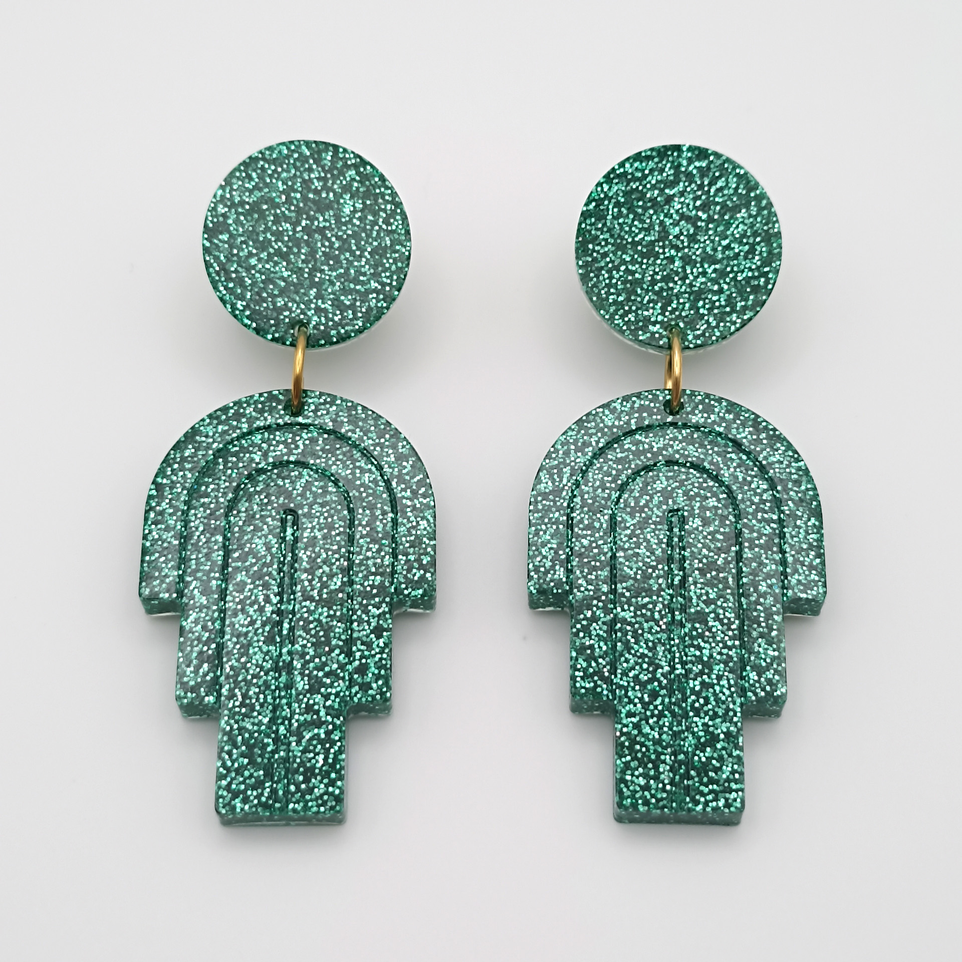 Apportez une touche de glamour et de sophistication à vos tenues avec ces superbes boucles d’oreilles vert émeraude en résine pailletée.